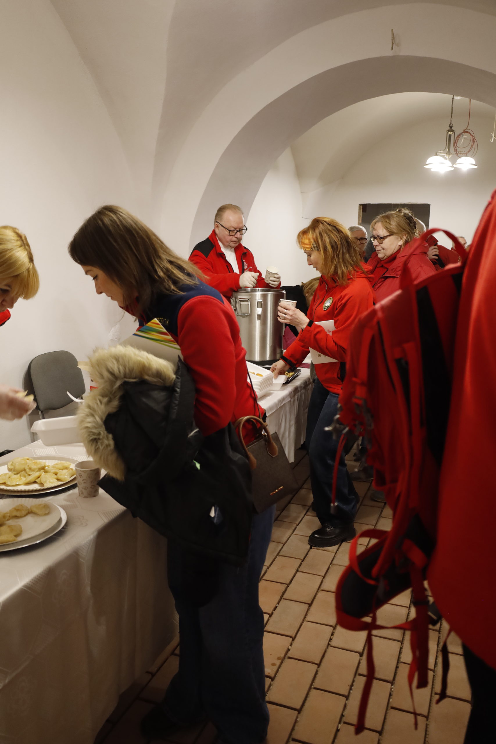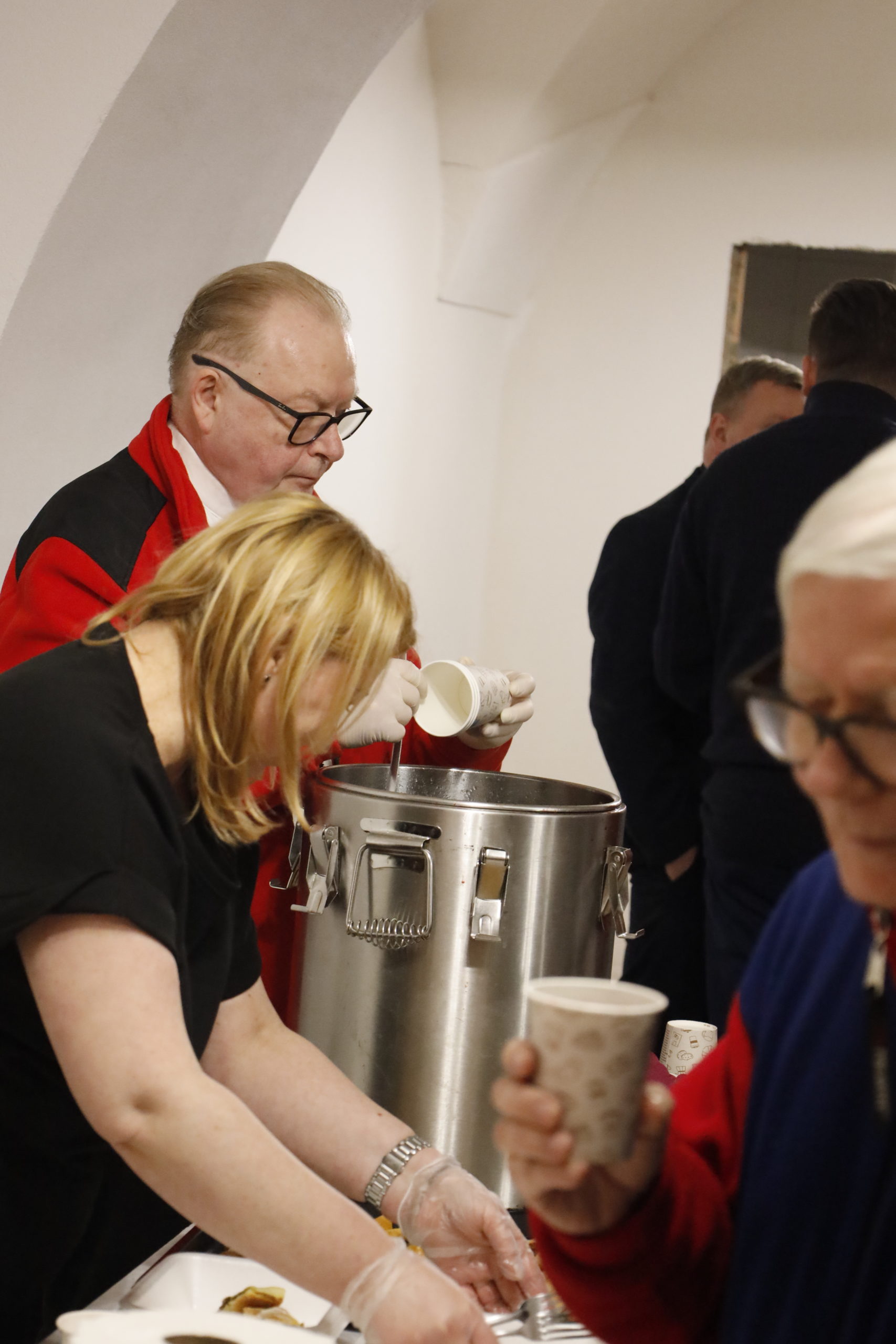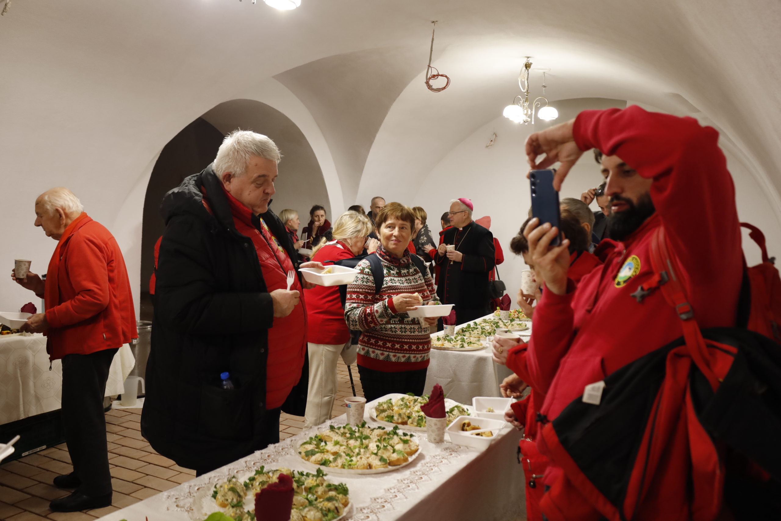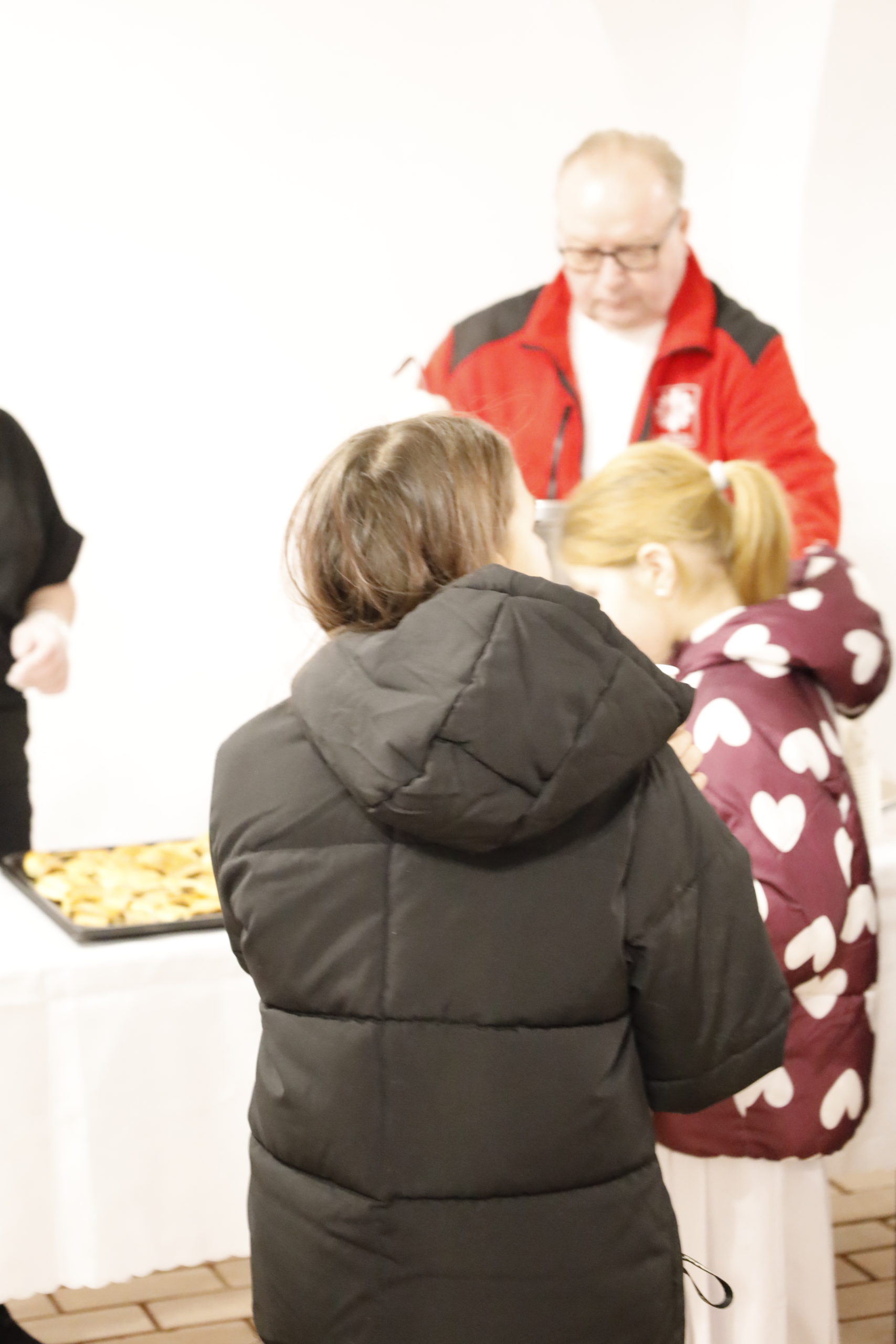 Po zakończeniu spotkania Caritas przygotował dla uczestników ciepły posiłek, pyszne ciasta oraz kanapki, dzięki czemu wszyscy mogli w miłej atmosferze porozmawiać i wspólnie świętować.